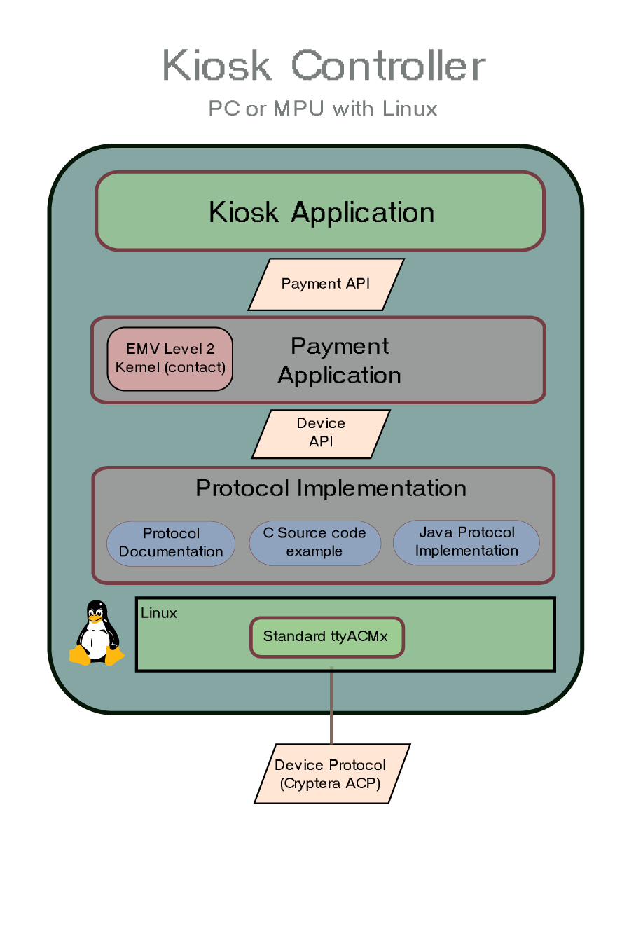 Устройства Cryptera могут быть связаны с основным приложением через последовательный протокол команд.